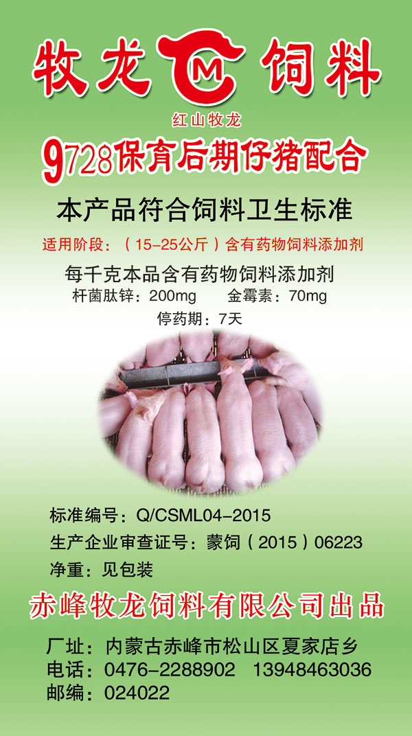 9728保育后期仔豬配合料
