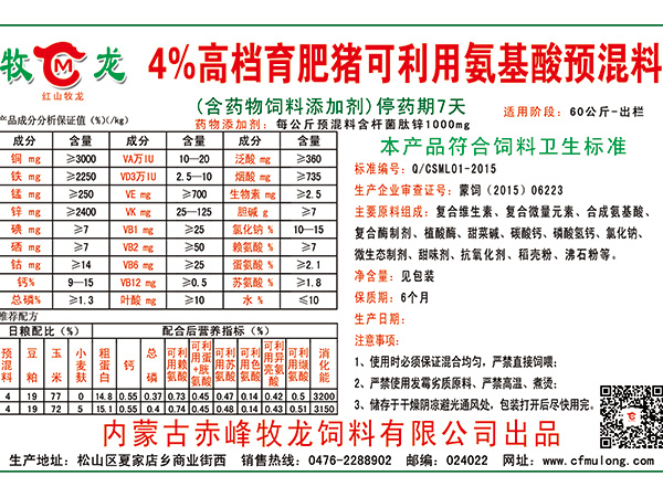 4%高檔育肥豬預(yù)混料