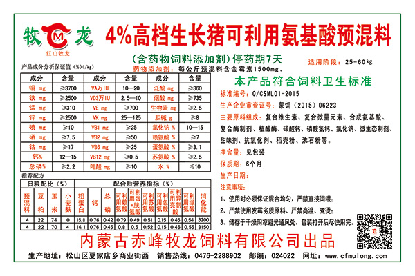 4%高檔生長豬預混料